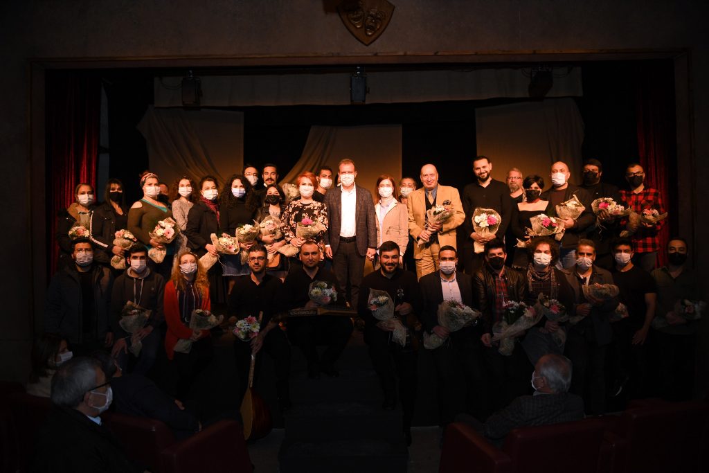 Başkan Seçer, Kültür ve Sosyal İşler Dairesi Başkanlığı Koordinatörü Bengi İspir Özdülger’e, Büyükşehir Belediyesi Şehir Tiyatroları Genel Sanat Yönetmeni Murat Atak’a ve Şehir Tiyatrosu ekibine çiçek takdim etti.